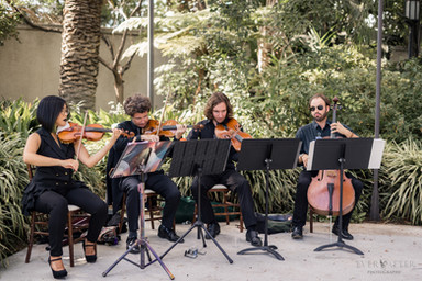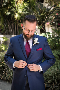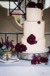 Stephanie and Justin have so much character and sense of humor! These two are a perfect match. They share a love for dinosaurs and comic books! You would never guess by the elegance of her wedding that she actually walked down the aisle to the "Jurassic Park" theme played by a quartet! And if that wasn't enough, her cake topper was a ceramic dinosaur bride and groom! Their silly personalities were beautifully blended with a berry inspired vibrant Ceremony. The reception followed at the same venue in an outside courtyard lit by string lights and centered around a stunning water fountain.